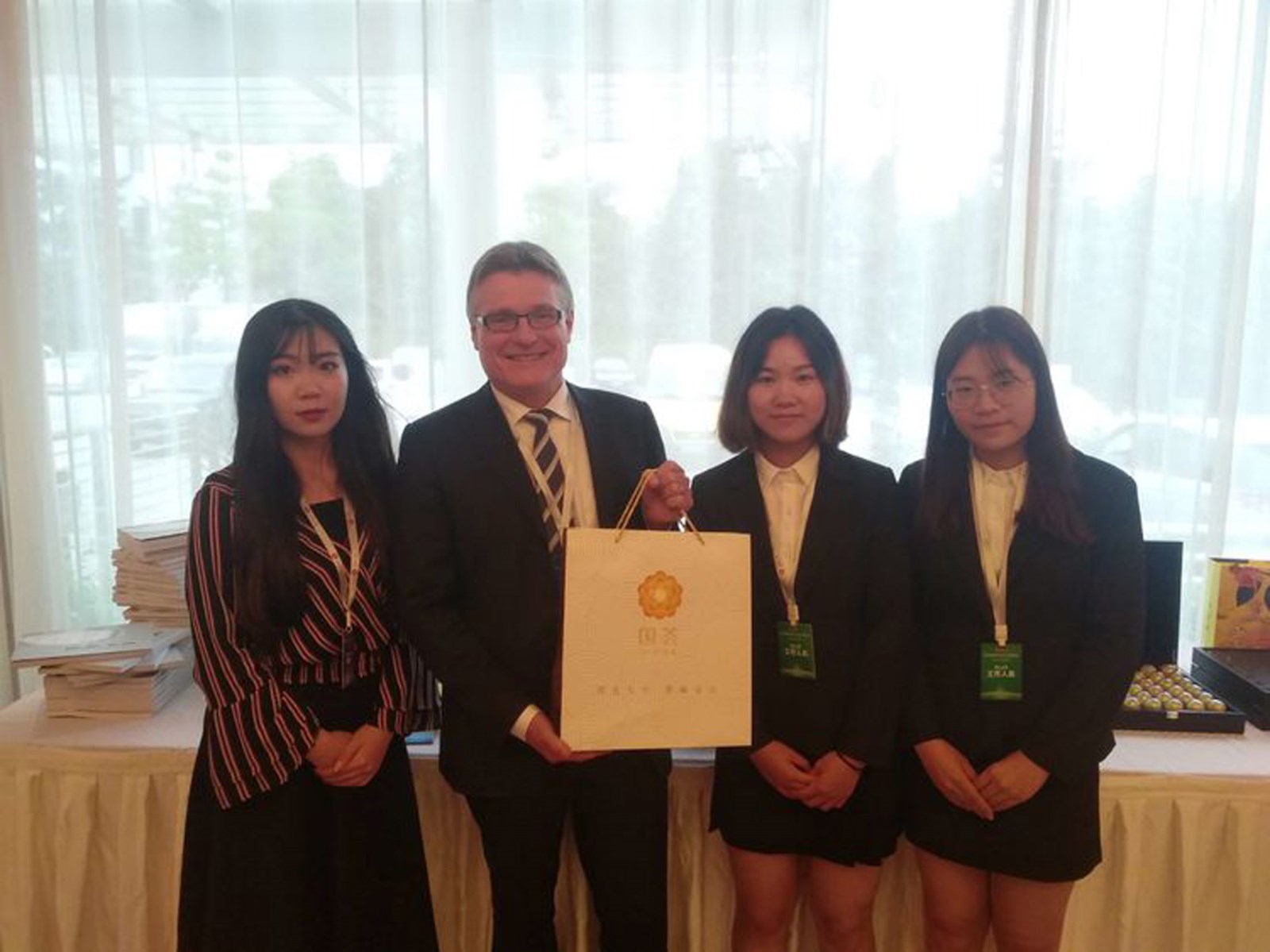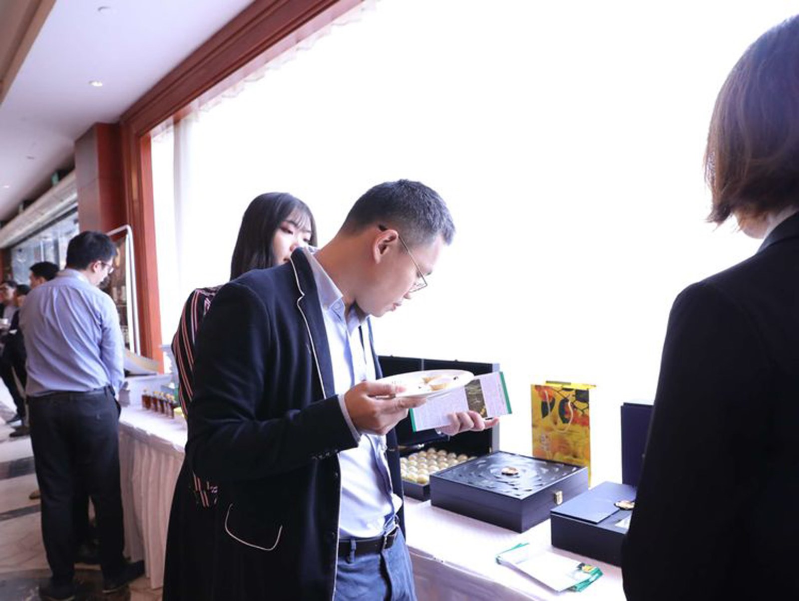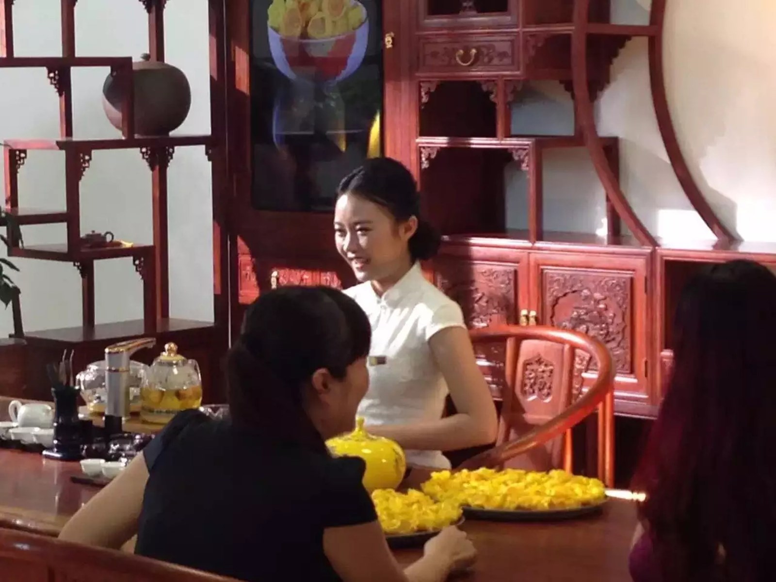 自家的素女配上自家的素茶(國薈金花茶)在展區上(shàng)“吸睛”不少。在會議間隙中(zhōng),自家的(de)素女手棒國薈金花茶,來往的(de)會議嘉賓駐足不前,紛紛品鑒和谘詢。還吸引了不少國際友人前來了解,並且合影留念。