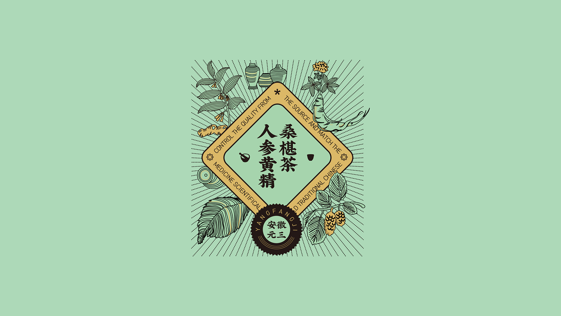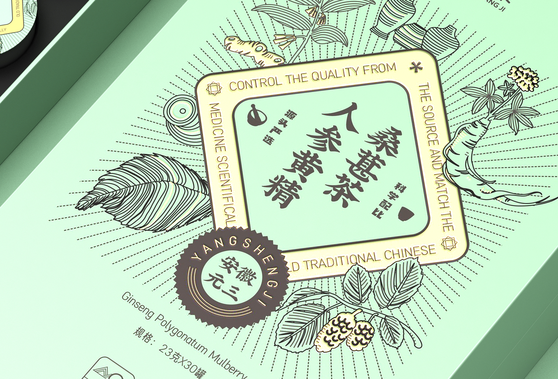 融入(rù)手繪人參黃精柔葚等手繪植物元素