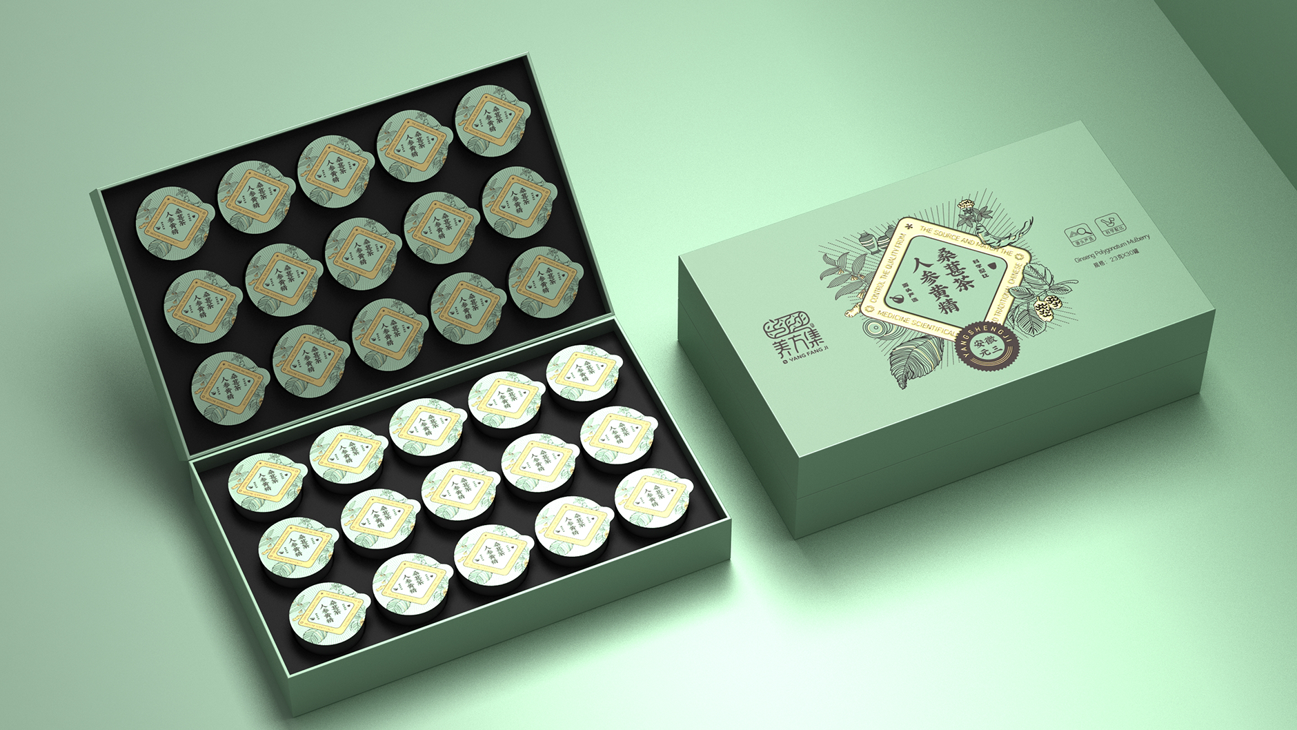 養方集人參黃精桑葚茶包裝定位(wèi):