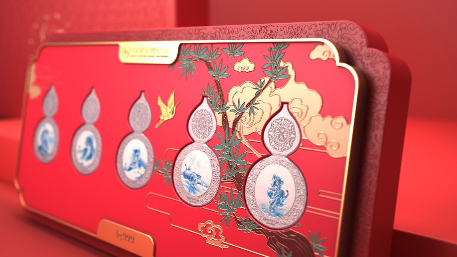 五福同堂為(wéi)該係列小規格產品,售價(jià)約千元,產品內容需可以陳列展示,多為過年隨手禮(lǐ),多為商務禮贈,需具備文化、擺放(fàng)、美觀、裝飾功能。