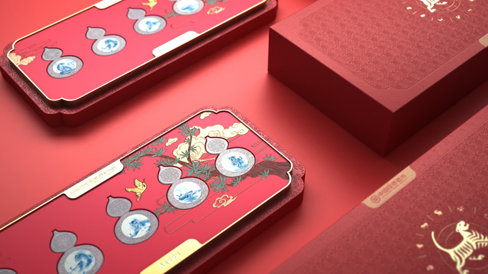 該產品為走量產品,設計要為大眾所能接受,因(yīn)此要以大眾審美為基礎,以傳(chuán)統吉祥的圖案的裝飾製(zhì)造喜慶的氣氛,迎(yíng)合傳統年慶氛圍。通過金(jīn)屬色的應用(yòng),拉升產品質感,使喜慶的氛圍上升到收藏的檔次。